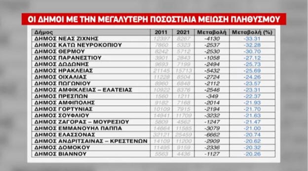 περισσότερους θανάτους σε σχέση με τις γεννήσεις.