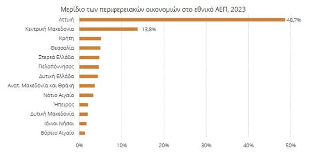 ήμισυ του εθνικού ΑΕΠ παράγεται στην περιφέρεια της Αττικής,