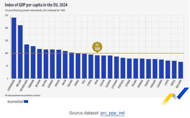 έχει μακράν το υψηλότερο κατά κεφαλήν ΑΕΠ μεταξύ των 27