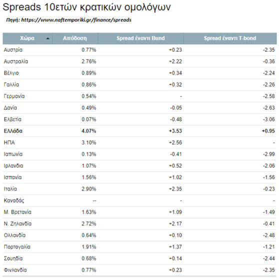 αποδόσεις των ελληνικών 10ετών ομολόγων