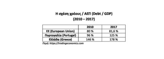 2017 πως διαμορφώθηκε η σχέση Χρέους / ΑΕΠ στην