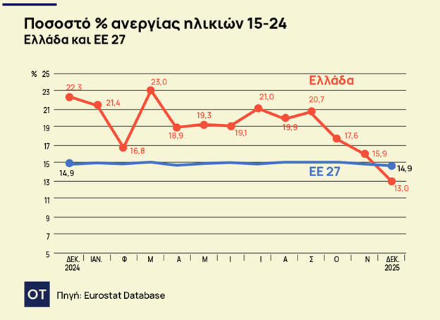 ανεργίας των νέων ηλικίας 15-24 ετών στην Ελλάδα