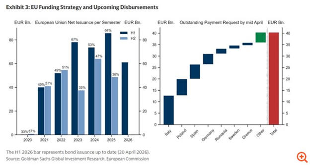 Η Goldman επισημαίνει ότι οι ηγέτες της ΕΕ έχουν στα χέρια τους ένα σπάνιο παράθυρο ευκαιρίας. Η άτυπη σύνοδος κορυφής στις 23-24 Απριλίου θα μπορούσε να αποτελέσει το έναυσμα για να τεθεί στο τραπέζι η επαναχρησιμοποίηση των 80 δισ. ευρώ, αντί αυτά να επιστραφούν ή να χαθούν. Η κίνηση αυτή, εκτιμά η τράπεζα, θα είχε τριπλό όφελος: εκσυγχρονισμό του γηρασμένου ευρωπαϊκού δικτύου ηλεκτρισμού, ενίσχυση της διεθνούς θέσης του κοινού ευρωπαϊκού χρέους μέσω βελτιωμένης ρευστότητας, και σταδιακή εδραίωση της νοοτροπίας κοινής αντιμετώπισης κοινών προκλήσεων – κάτι που η Ευρώπη δυσκολεύεται ακόμα να εφαρμόσει στην πράξη.