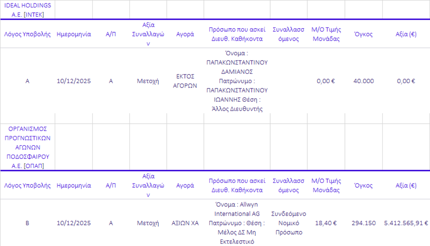 μερίσματα που θα προκύψουν από τα αποτελέσματα του 2025. Οι