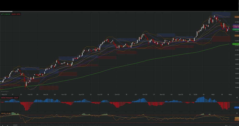 2.560 μονάδες, στα όρια των οποίων κινείται ήδη ο δείκτης.