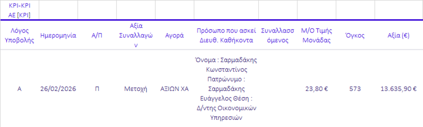 Γνωστοποιήσεις συναλλαγών |