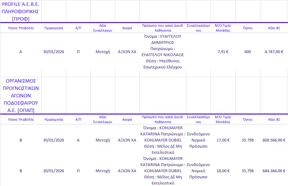 Γνωστοποιήσεις συναλλαγών |