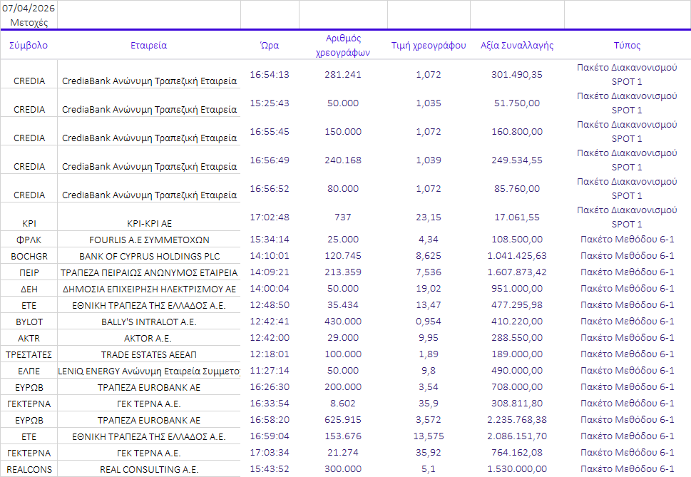 δύο ακόμη πωλήσεις, με το συνολικό τίμημα να διαμορφώνεται στα