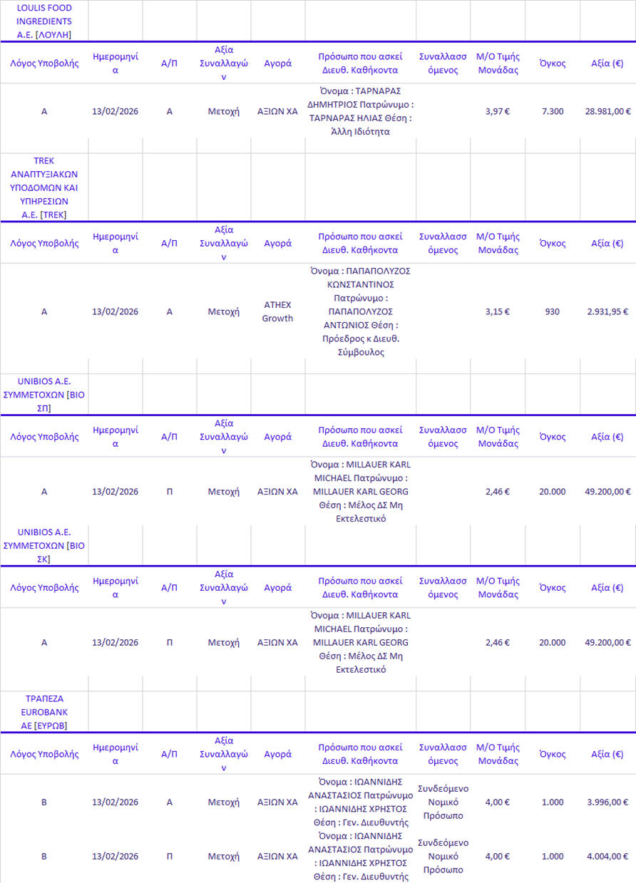 Γνωστοποιήσεις συναλλαγών |