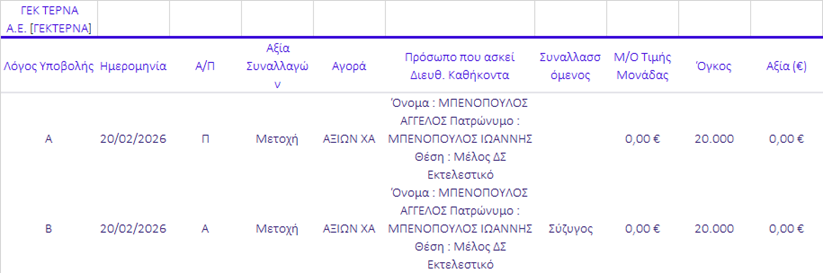Γνωστοποιήσεις συναλλαγών |