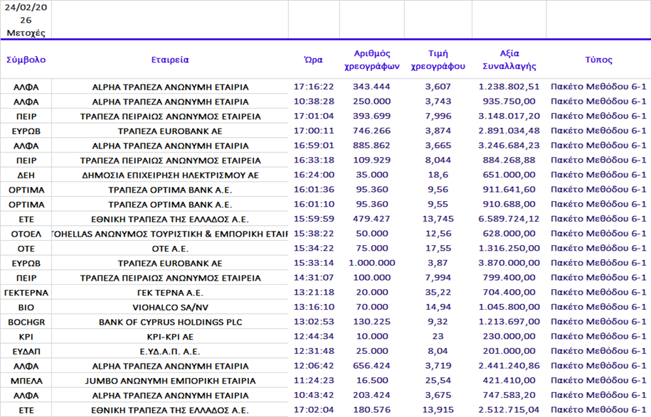 αντίδραση στο Χ.Α., με τον ΓΔ να διαμορφώνεται τελικά στις