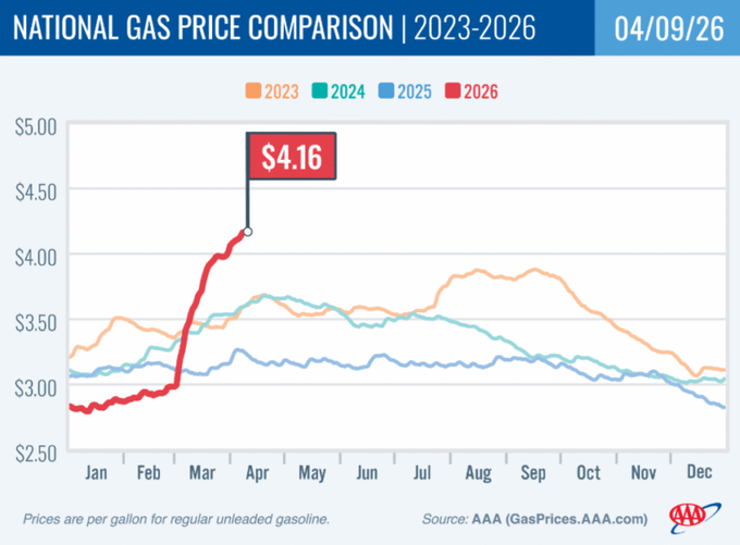($2.98/gallon to $4.16/gallon) is the biggest we've seen in