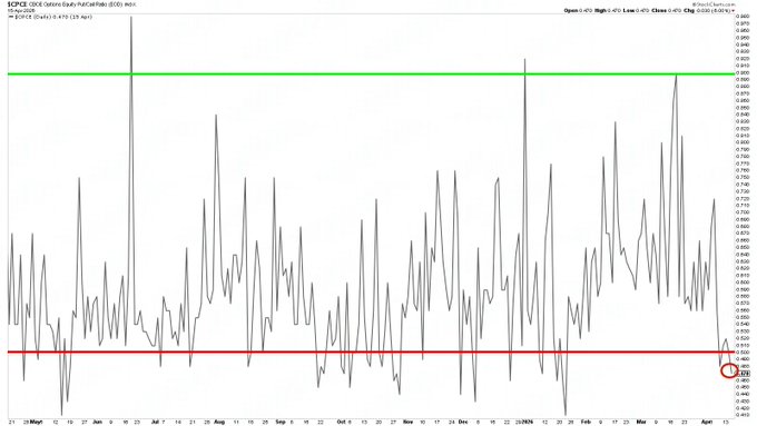 Heads up, the market is back in euphoria territory when looking at the equity options put/call ratio.