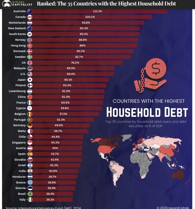 Australia and Canada households officially pass 100% household Debt-to-GDP
