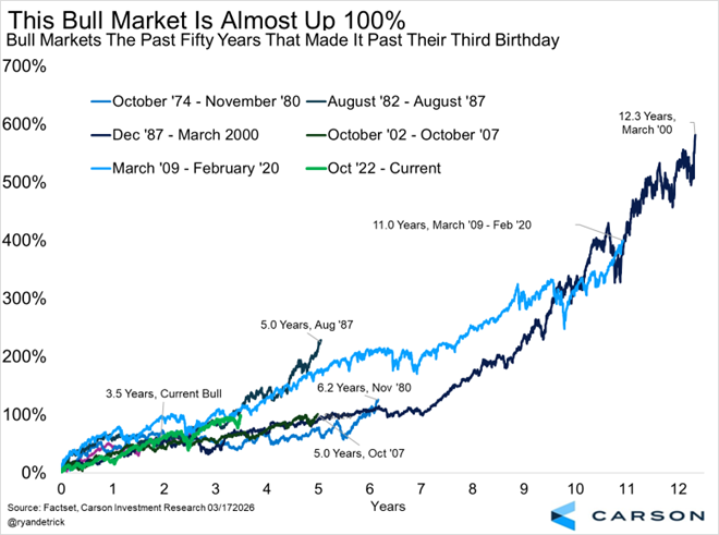 If you invested $10,000 in the U.S. stock market 10 years ago you would have $37,595 today. The same investment made 50 years ago would be worth over $3.3 million. The magic of compounding, in one chart…