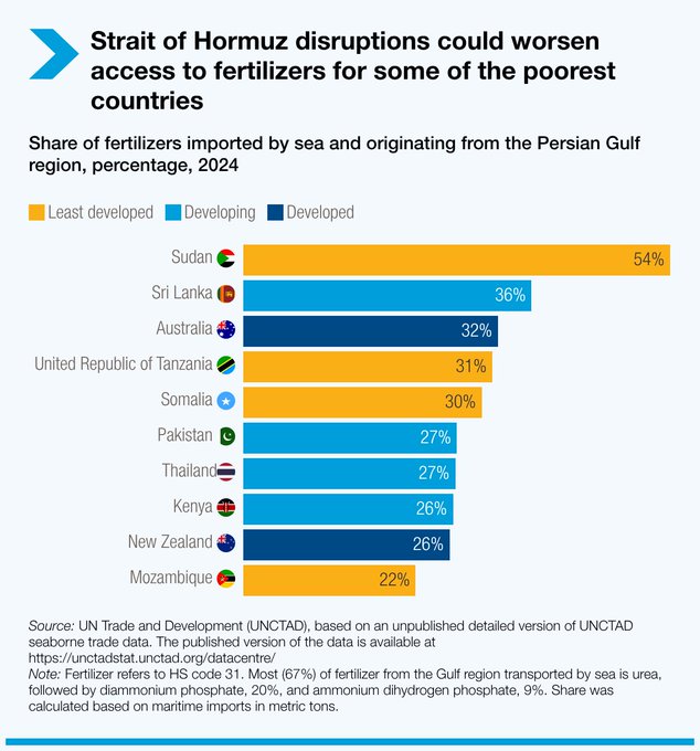 Fertilizer prices are increasing because of the blockade at the Strait of Hormuz.
