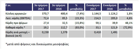 Σχολιάζοντας τα αποτελέσματα Γ’ τριμήνου 2017, ο