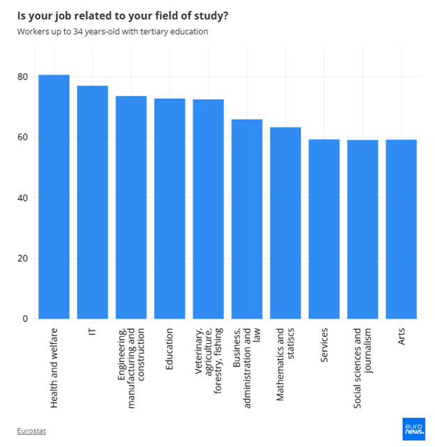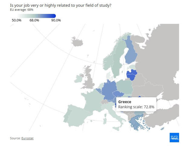απασχόλησης στο αντικείμενο σπουδών. Η Ουγγαρία εμφανίζει